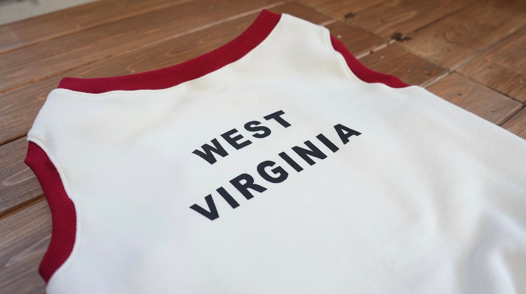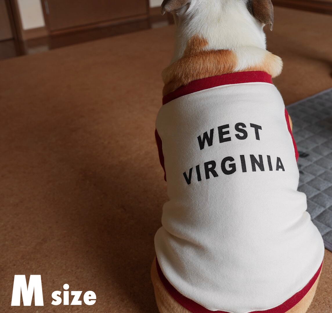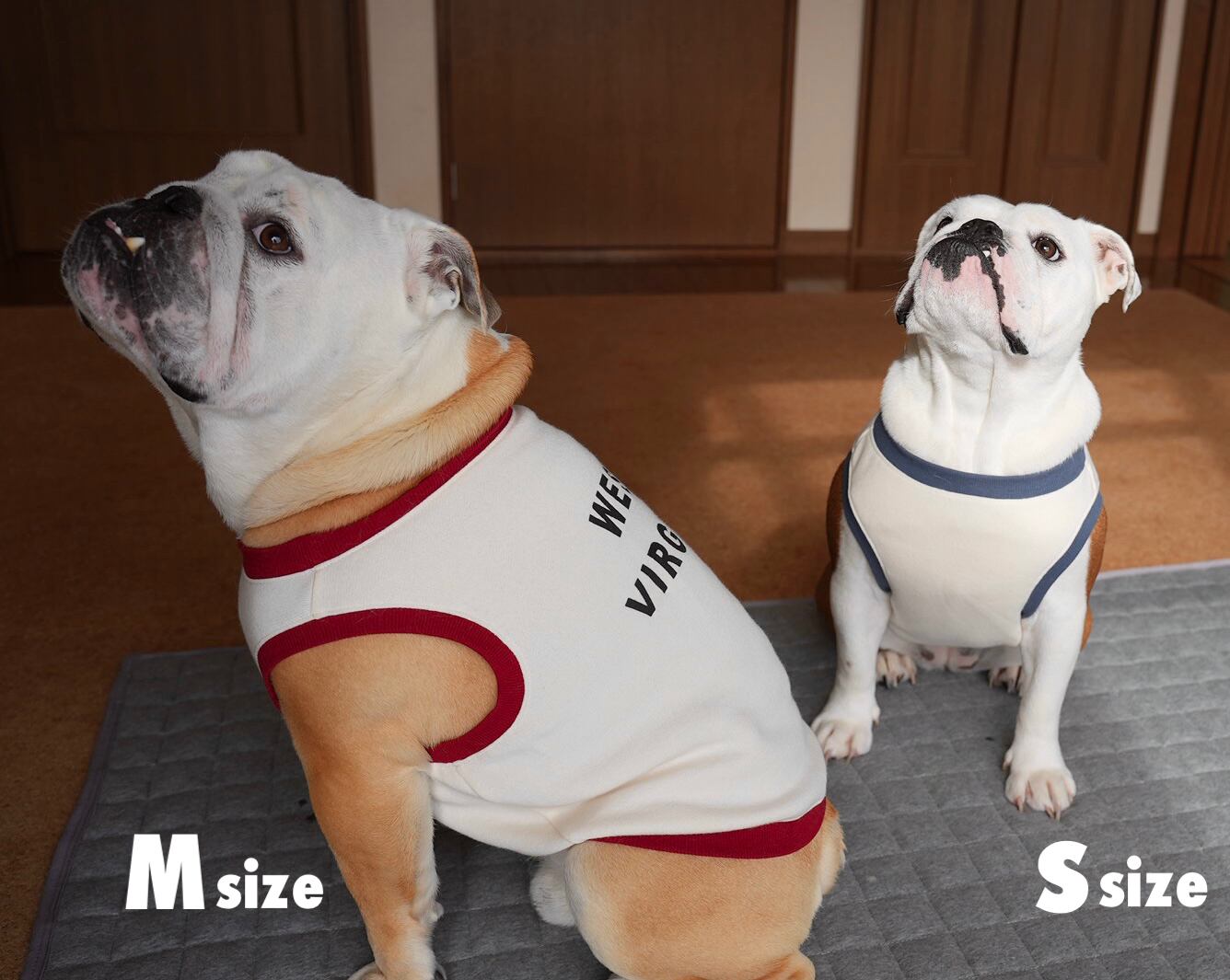 クリーム色に赤のリブがアクセントになるロゴ入りタンクトップ。